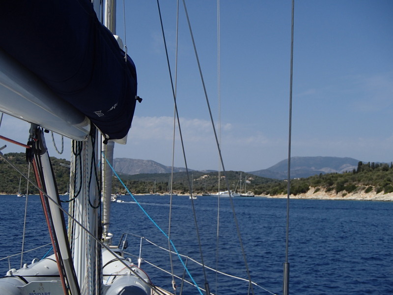 We arrived in Port Atheni, dropped the sails and made our way into the bay and our favourite spot stern to the shoreline.