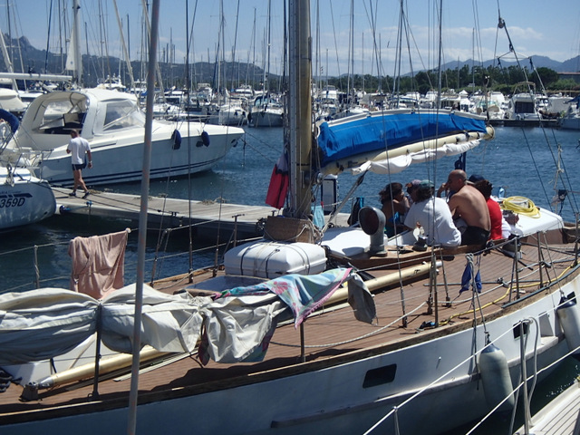 Despite this……don’t we just love the Sardinians…..they are just fab and know how to enjoy themselves. Despite the many miles we have sailed in all kinds of weather, whilst us wimps have ridden out the gusts in the marina; a local Sardinian boat has done what Italians do best……enjoyed themselves.
