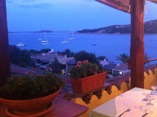 A short dinghy ride to the shore for the evening at Ti Pulcino restaurant with a great view of the bay.