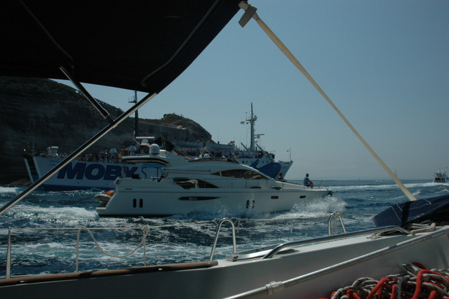With all sails up by 09.14 hrs in light winds we arrived at the natural harbour entrance at 11.00 hrs. As we approached the narrow harbour entrance we were met by an armada of yachts, boats and day tripper tourist boats heading both in and out of the harbour at speed and four abreast. We threaded our way into the chaotic harbour….. now in full tourist season.