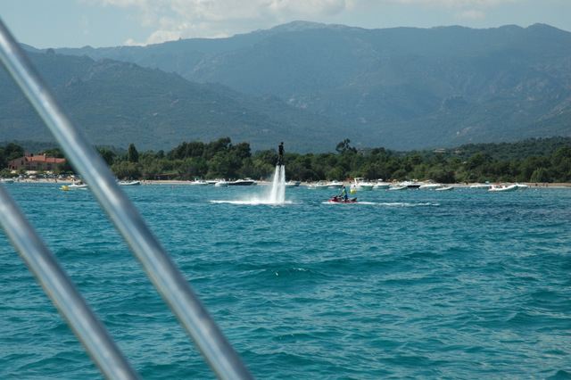 The beach, beach life, shallow lagoon. James Bond jet boots.