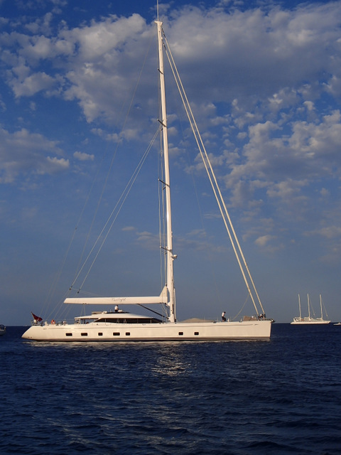 A supermotoryacht came in to take shelter too. The motor yacht is called ‘Venus ‘ which was designed by Phillipe Stark and built for Steve Jobs of Apple. Sadly he died before the magnificent motor yacht was launched. It made a sad and beautiful sight in the bay.