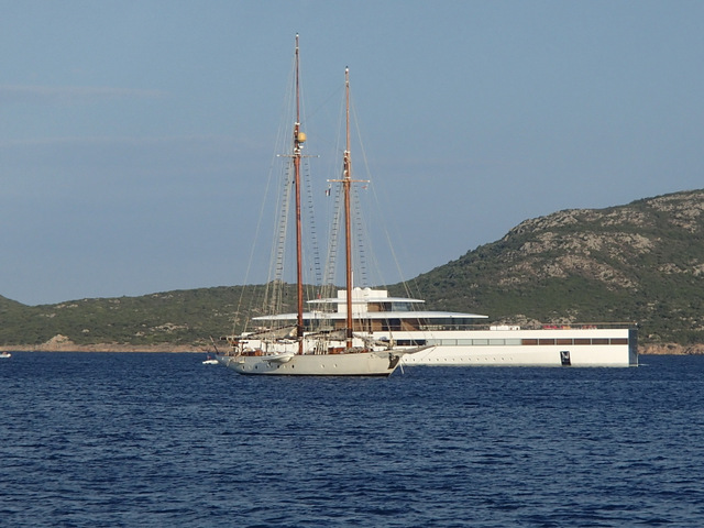 Santa Amanza …..super yachts and Venus at anchor.