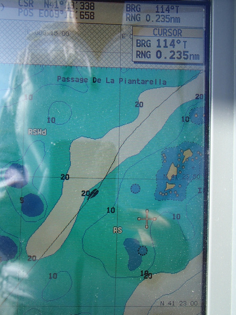 After Santa Amanza we headed south again through the Piantarella passage following transit/ markers on the hillside to squeeze through the shallows and rocks before heading out into the straits of Bonifacio.
