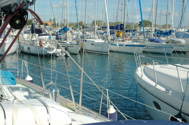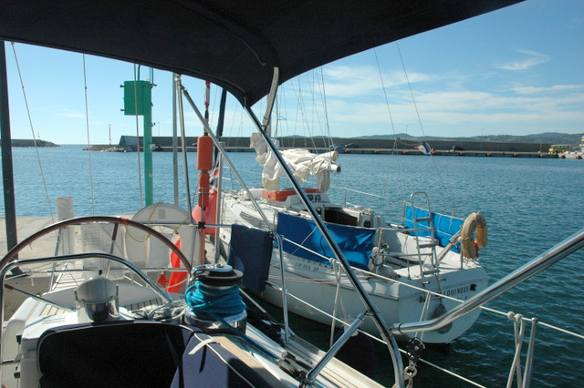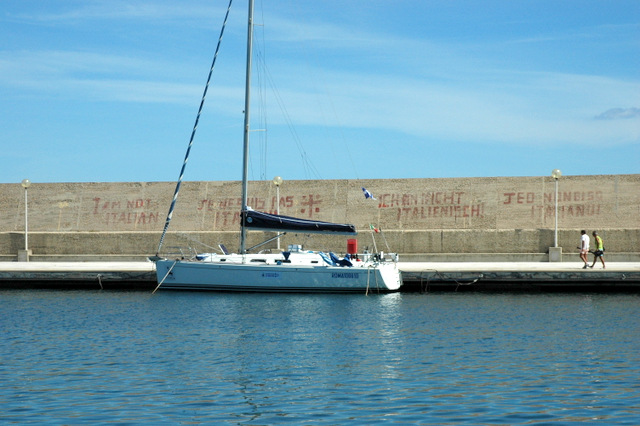 On the marina wall at La Caletta, someone has chosen to make this statement more public with a display of graffiti …..not just in Italian, but in French, German and English in enormous letters.