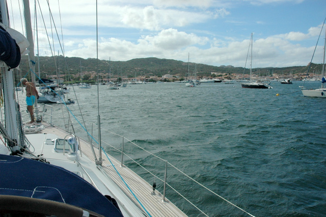 As the day progressed the winds increased with small waves moving across the bay of Cannigione, all generated by wind. We knew the sea state would be fine and protected in the NW forecast.
