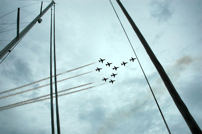 The spectacle of the Red Arrows diving, swerving and screaming past the rigs here was heart stoppingly good, they are just fab.