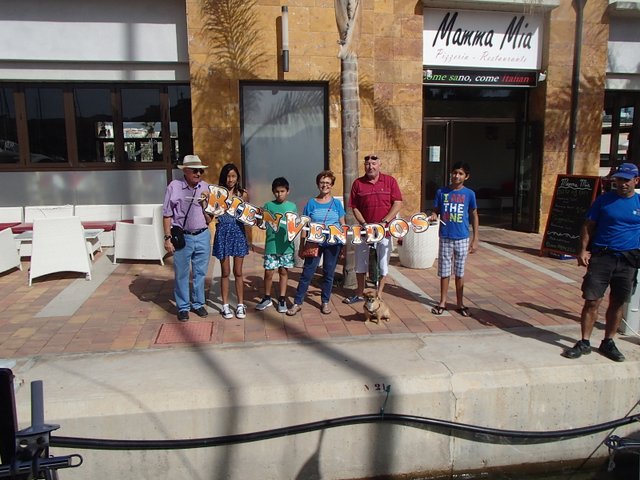 Photos below……the warm welcome ‘bienvenido’ from our Spanish and English friends in the marina.