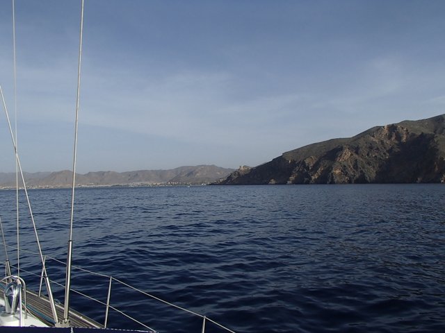 Our intention was to stay well off the Mar Menor as the coastline shallows very rapidly and creates an uncomfortable sea. However, at 17.25 hrs and going into an overnight sail we heard a Coalition Warship 23 n miles from us making announcements asking for any ‘acts of terrorism’ to be reported as they were standing by.