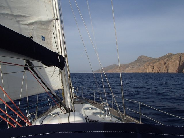 This made us feel safer, not knowing what was happening out there, but unfortunately meant we had a rough ride in fairly big seas and a following wind off the Mar Menor.