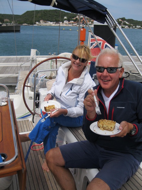 Discovered the centre of Mahon, very beautiful and visited the supermarket to do some shopping for an apple pie! The weather was pretty good, so it was time for some dek-sletten!! A Dutch _expression_ for lying on the deck, with expensive glasses, glamorous bikini’s and have a sun bathe with a glass of prosecco… In practice we had a beer and some cheap boring magazines and the sun was gone…but it’s all about the way you look…