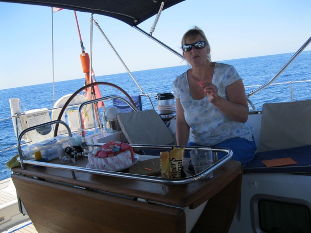 Monday the wind was gone, flat sea. With the sun up it was a pleasant day despite motoring all day.