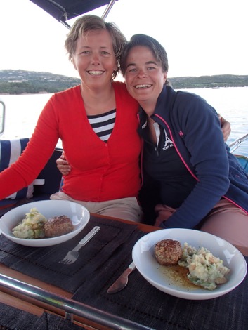 It was our turn to do the cooking this evening, so meatballs on the menu again! This time we also made a vegy style ball for Tina… Had a lovely evening on the boat, eating outside and having good company.