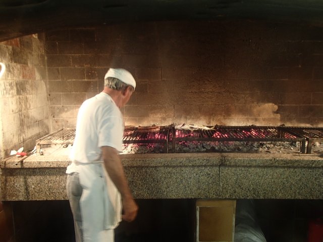 The simple plastic tables and chairs now full of people, the sun setting, lots of laughter and the traditional chef cooking his food with great care and masterchef-like attention…….what an atmosphere.