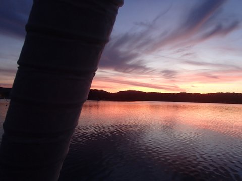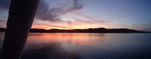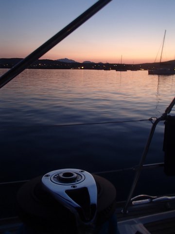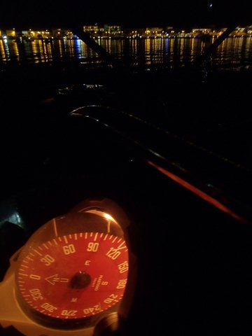 Evening at anchor with the binnacle cockpit lights, Scoglio.