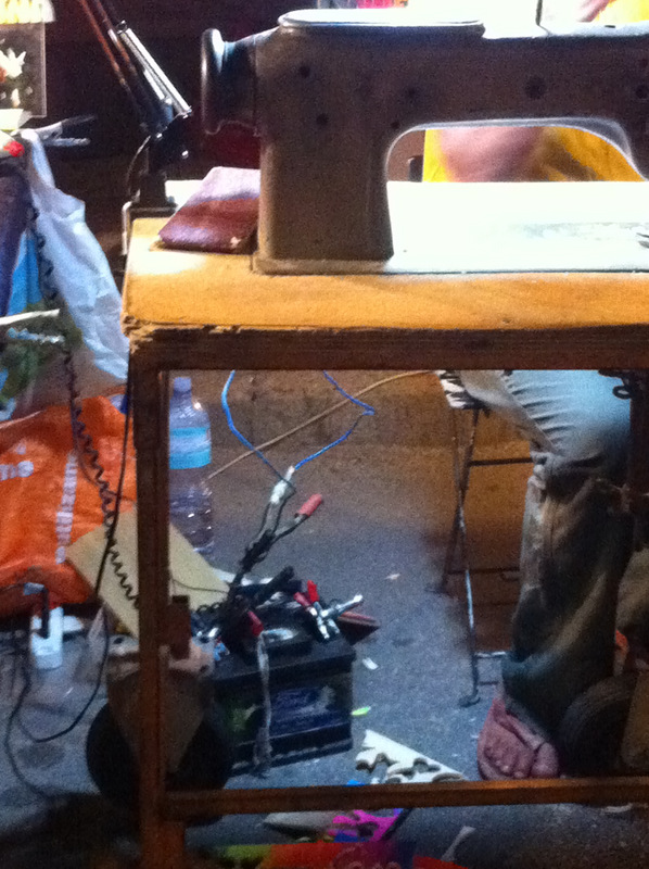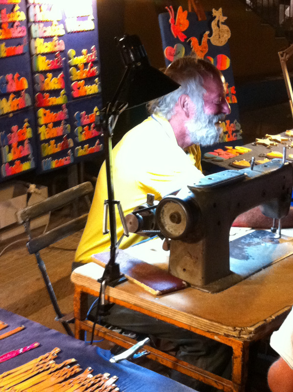 There are many craftsmen and women who make and sell jewellery, paintings, objects, leather work etc. One man uses a band saw on something which looks like a sewing machine. Very quickly he produces wooden letters to form the buyers name, the letters are all connected, linked , often with a flurry, swirl or even a dolphin attached to the top of a letter.