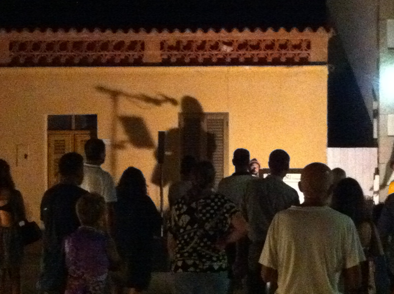 I took a lot of pictures of this group as their lights created amazing shadows on the building behind them. The shadows were very crisp and exaggerated scale. We watched as the large shadow played the songs which we could hear without at times seeing the actual singer.