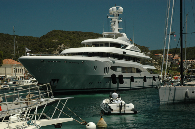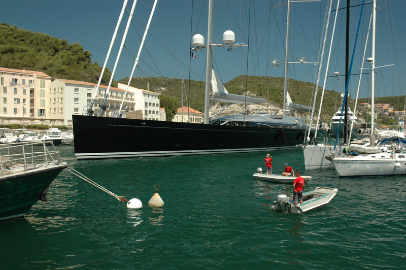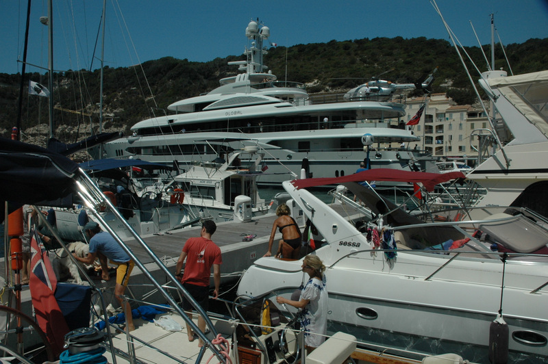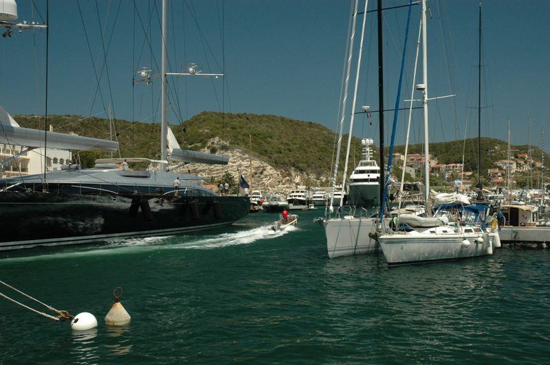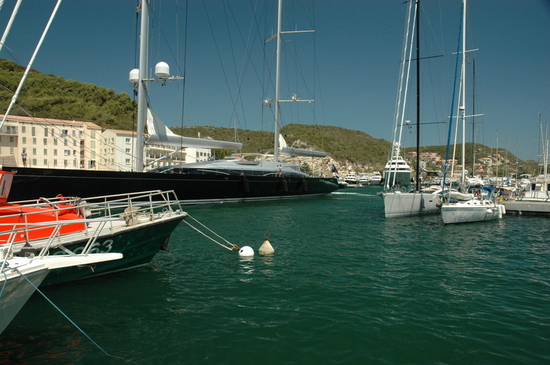 In Bonifacio at the very end of the harbour there is just enough space for two super yachts.