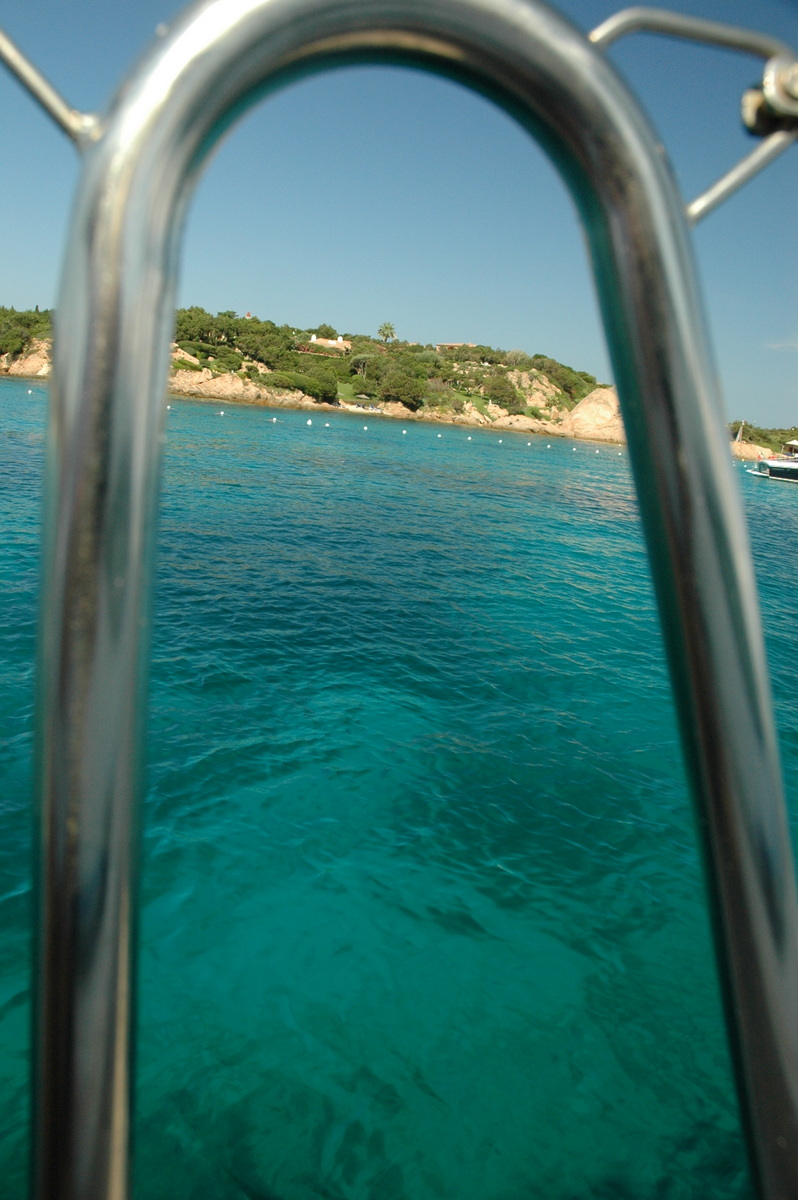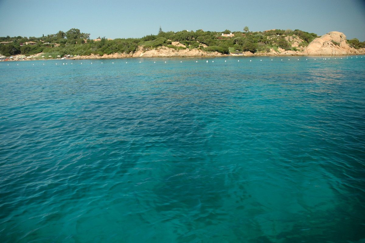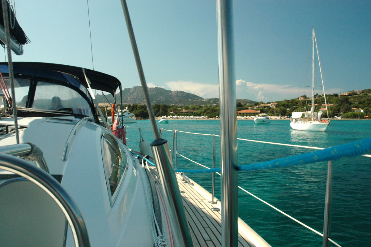 A lunchtime anchorage in beautiful Cala di Volpe on a stunningly hot day.