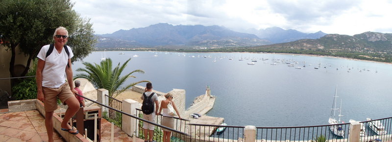 From the bay you can see the old town, the citadel, marina and the horseshoe shaped bay with a backdrop of fields, trees and vegetation layered into the Corsican mountains.