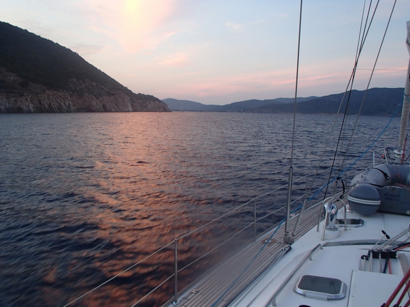 After refuelling in Macinaggio the wind suddenly filled and gave us a gift wind angle to sail directly to the Island of Elba. It was already 1pm but we looked at the pilot book for safe anchorages and calculated that with a great course and continued speed we could make it safely into a bay to anchor before dark.