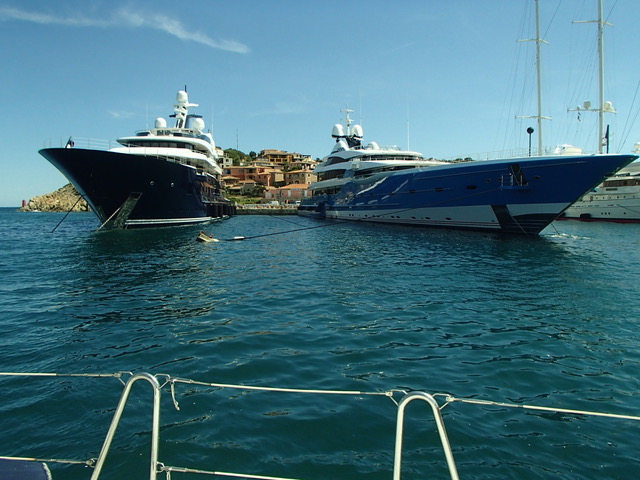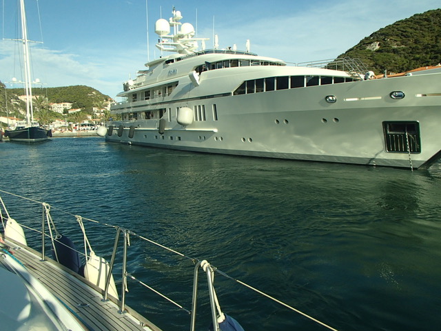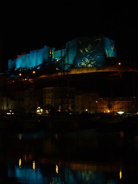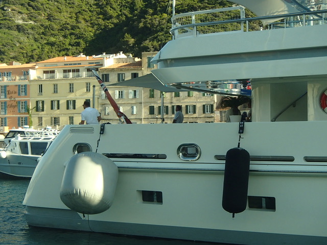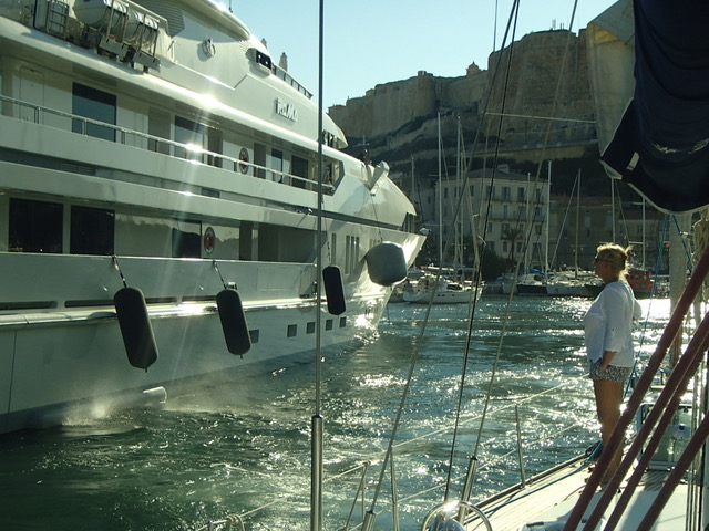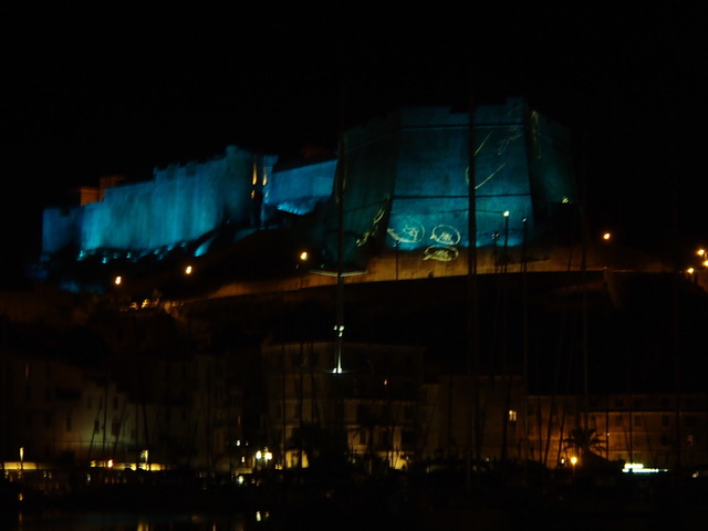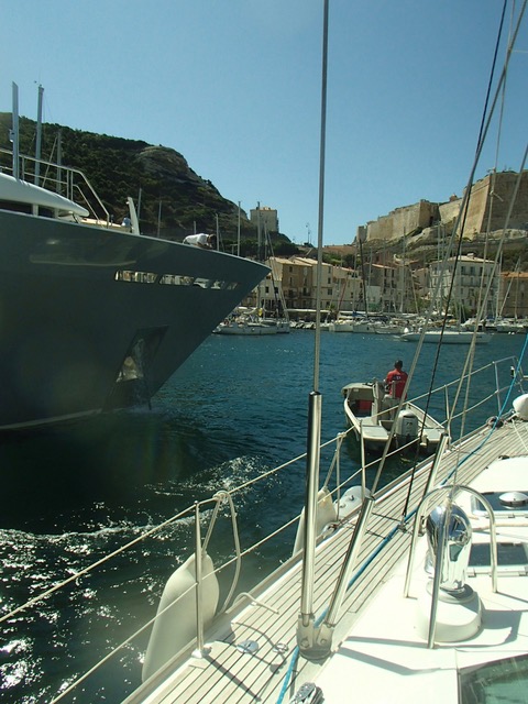 Photos of Bonifacio, mega yacht goes astern close to us, Bonifacio citadel by night and sailing the area, super mega yachts stern to in Porto Cervo.