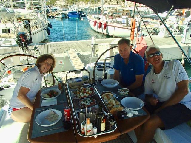 In 2011 Jackie joined John to sail on Tioram again from the island of Symi in the Dodecanese Aegean, Greece through the Corinth canal, Ionian islands, Messina straits, Sicily, Sardinia, the Balearic Islands through the Med to Spain.