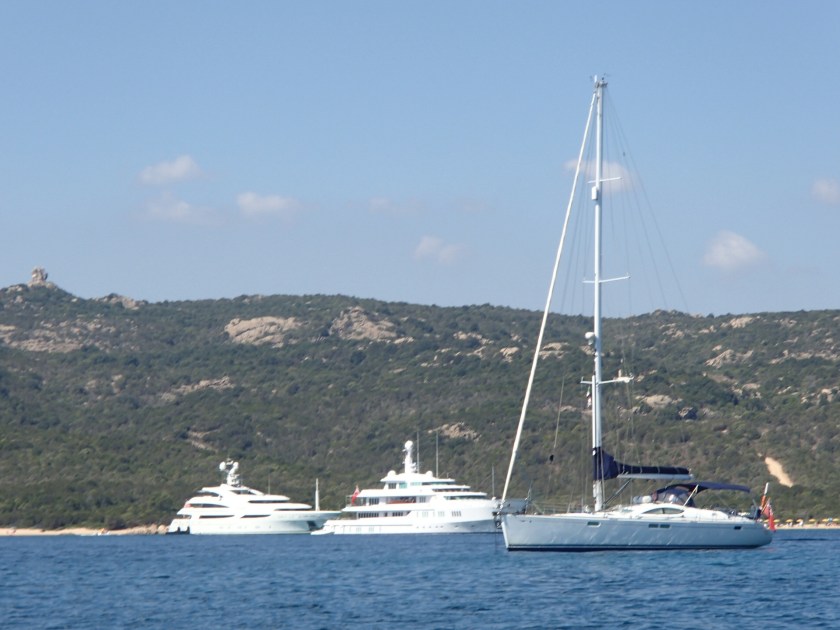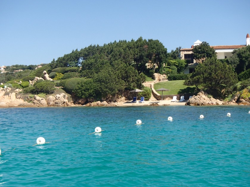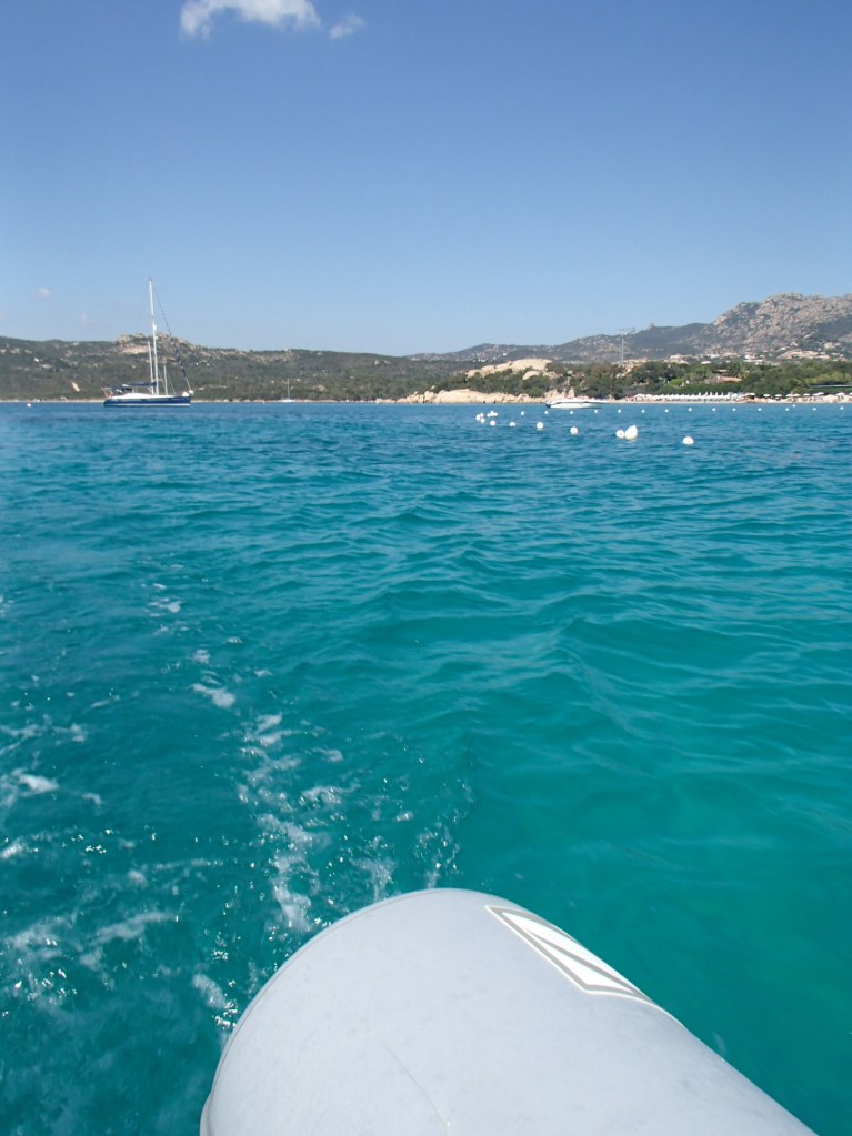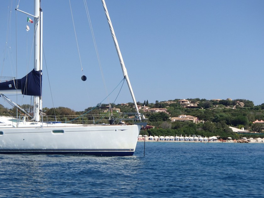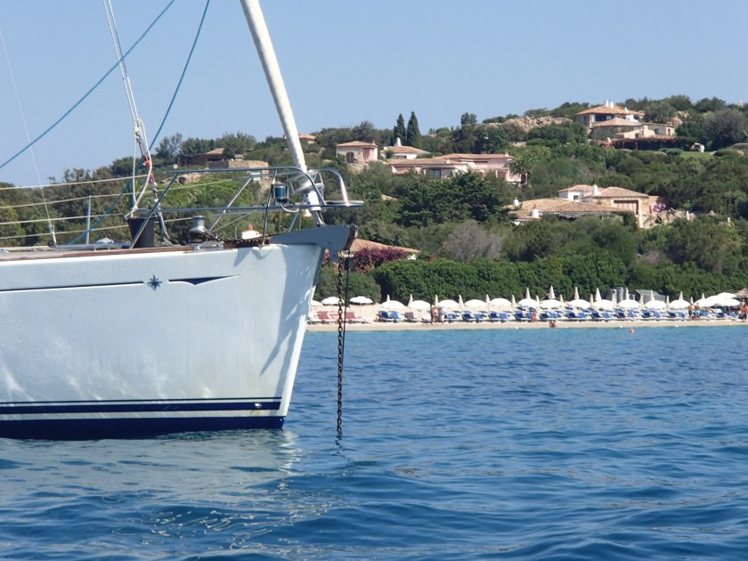 Hi all, We lifted anchor from Ziu Paulu, Cannigione and motored south along the coast to Cala di Volpe. The weather and anchorage very beautiful and calm. A few lovely photos taken of the bay and Tioram from the dinghy.