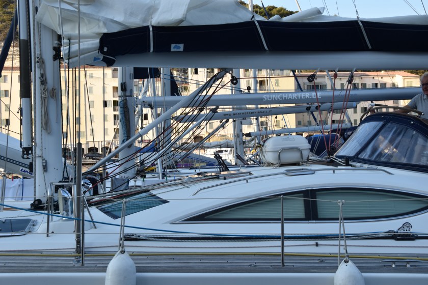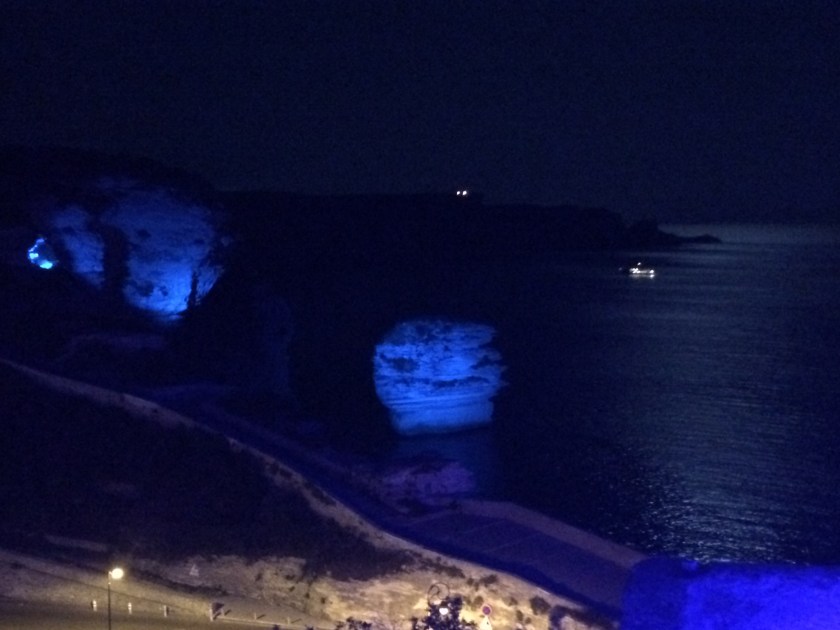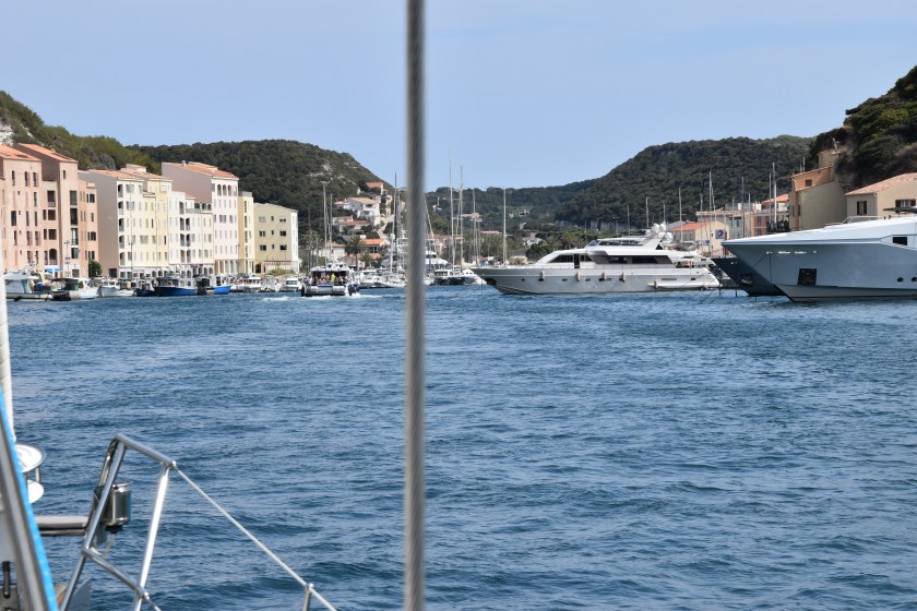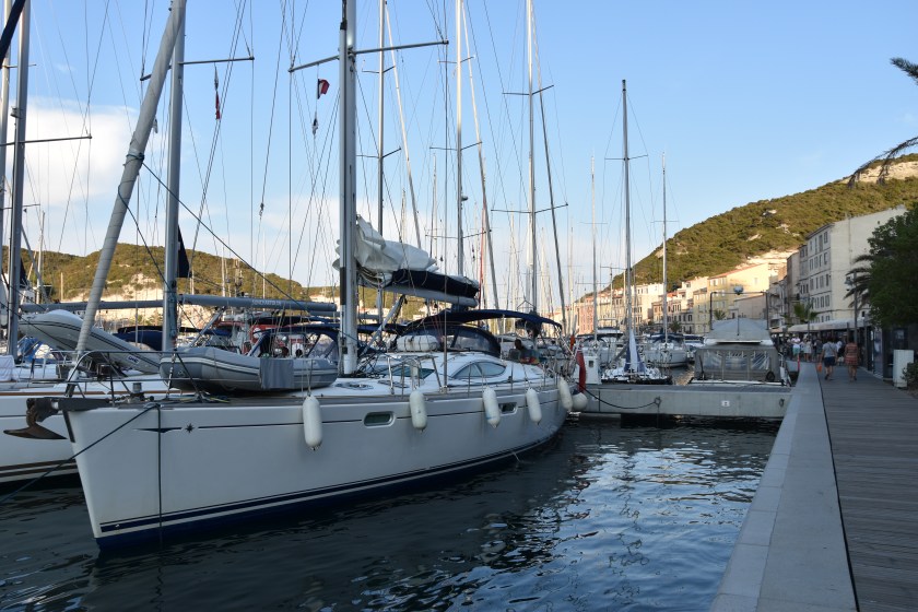 We slipped from La Maddalena and sailed across the Straits of Bonifacio and into the natural harbour. We got a great spot on the harbour wall. Always a nerve racking, nail biting experience with Tony threading our way going astern into these tiny moorings. Sometimes squeezing between bow to bow anchors. Its not possible to reserve spaces under 20m and the mariners wont help, only passing helpful people or other yachties. Today we got a good spot, stern to the wind, backing into the mooring, arriving at 13.15 before the chaos of the later arrivals. Once safely tied up, Bonifacio is always a really fab experience by day and the citadel by night.