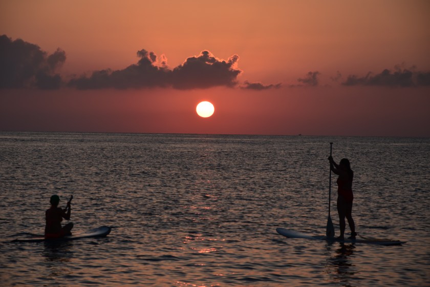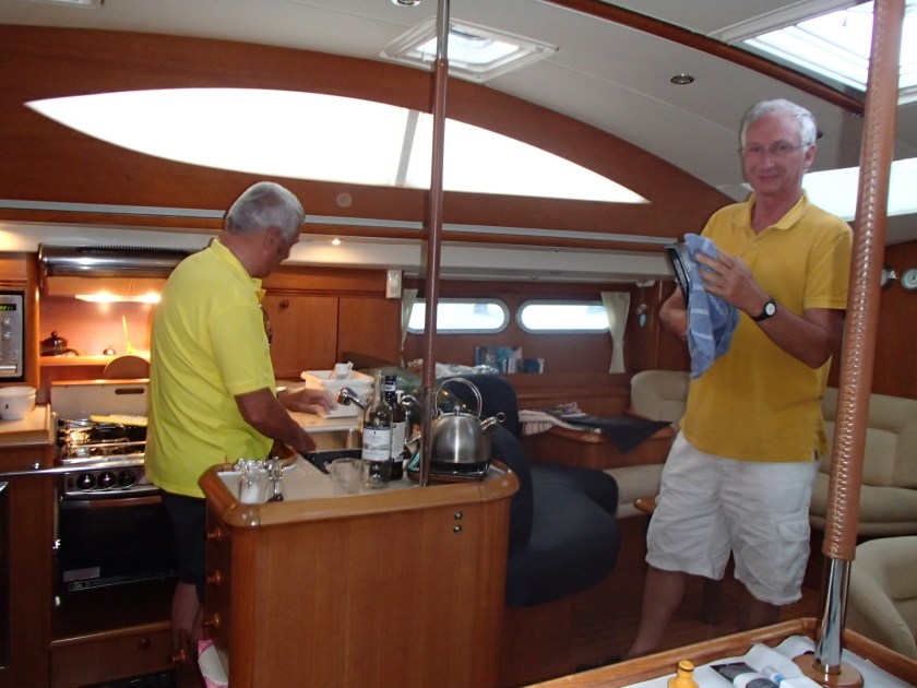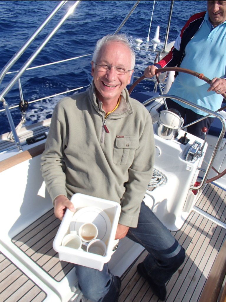 more photos…… At sea en route Sardinia to Menorca, sunset stormy sky, on the dock Mahon, Menorca, Tony E washes up after first time he had ever cooked, his family were in shock, the Tioram crew hit Mahon, at anchor Portinax, Ibiza- paddle boarders in the sunset mmmmmhhh.