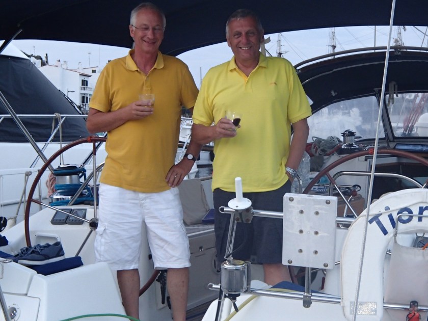 Tony, Tony E, and Dominic arrive safely into Spain, 11 days, 581 nautical miles.